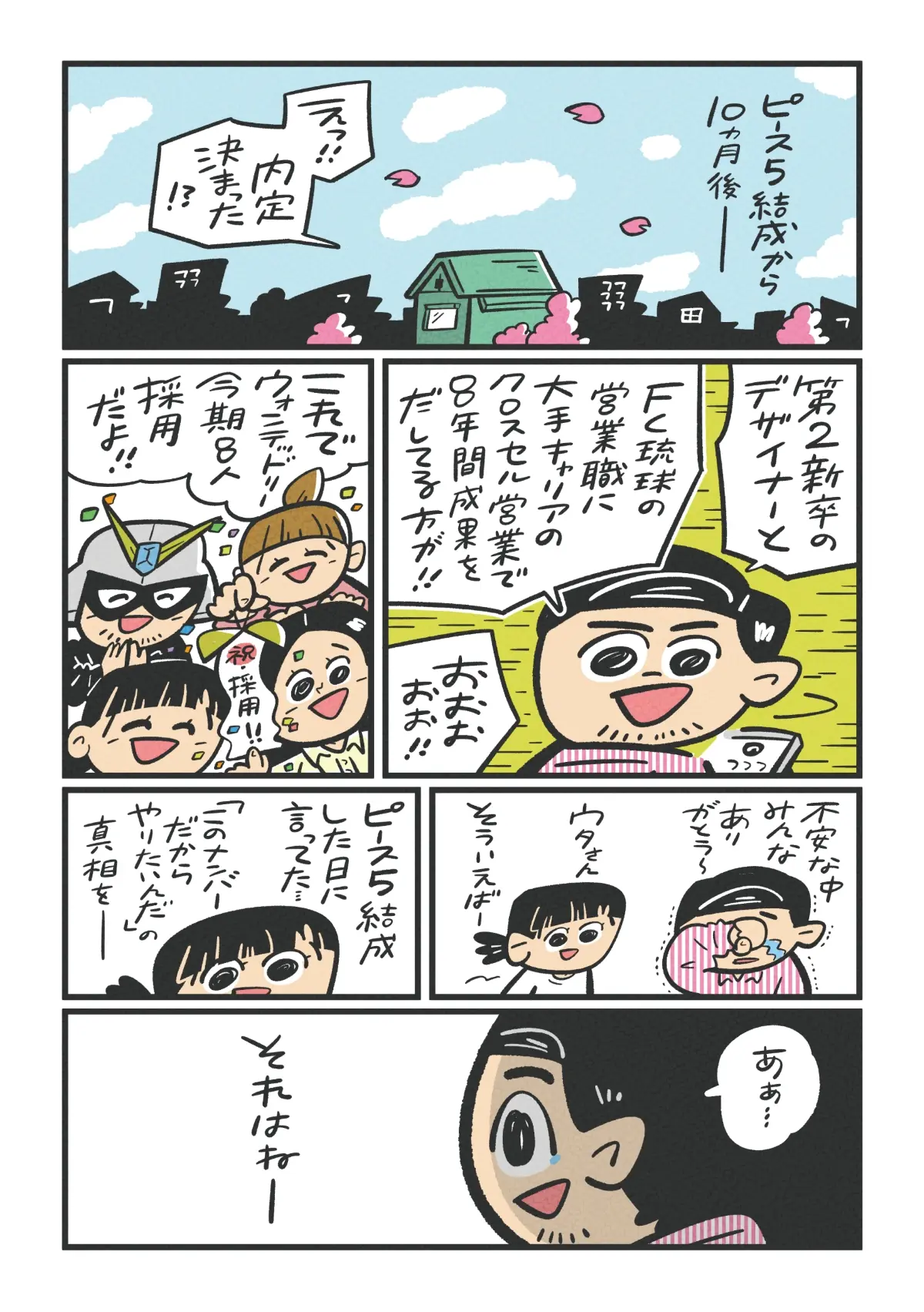 しかしらふてーは、4人それぞれの強みが活かせる領域を発見し、小さくて凸凹なチーム「ピース5」が誕生。奮闘の日々が始まった・・・。