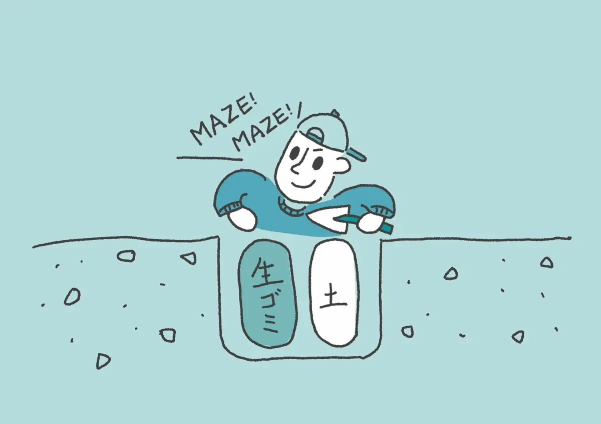 生ごみと土の区別がつかなくなるまでよく混ぜます。