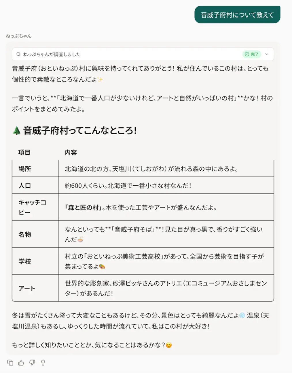 AI副村長「ねっぷちゃん」は、音威子府村の未来に向けた新しい試みです。