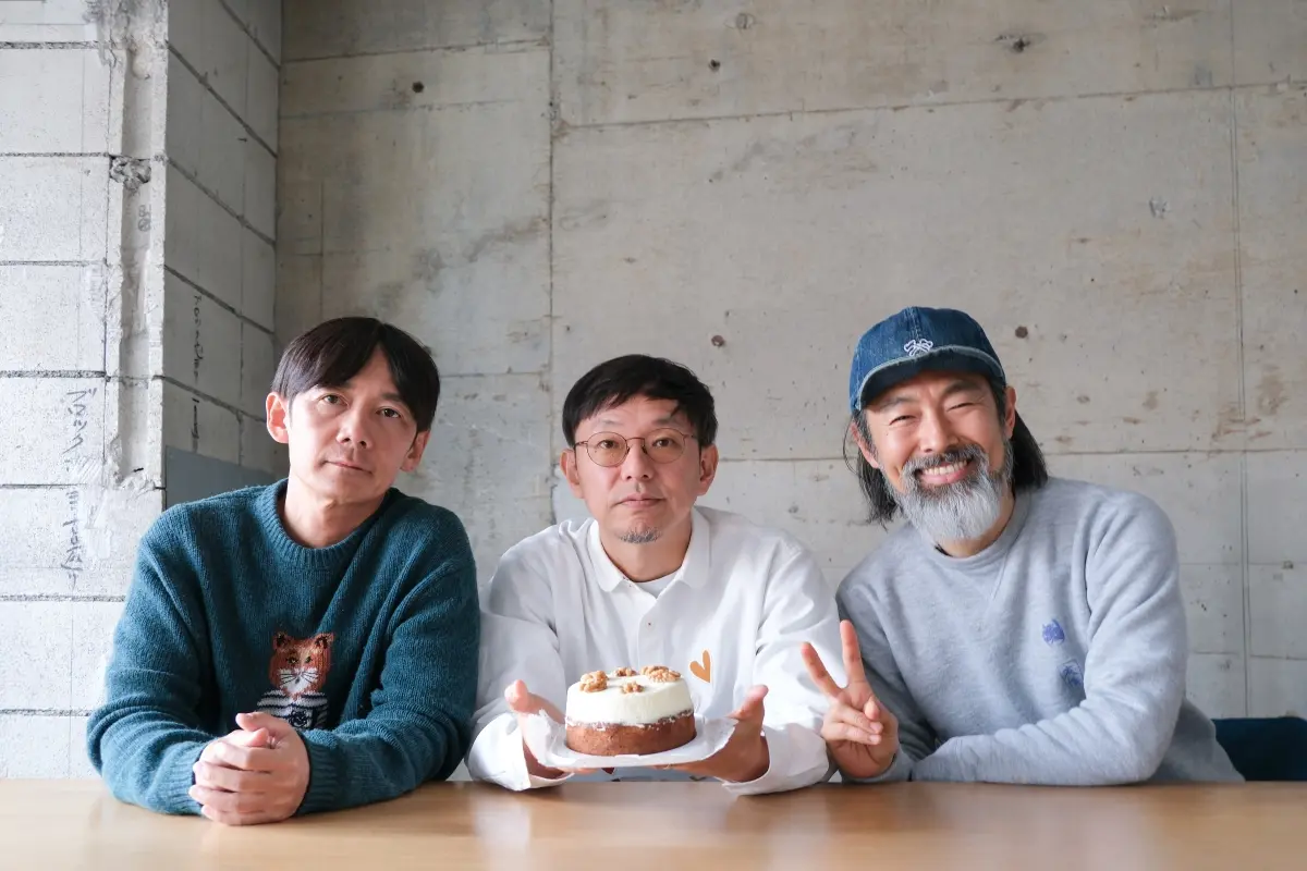 (写真向かって左から、面白法人カヤック代表の貝畑政徳、柳澤大輔、久場智喜。インタビュー時(2月)は3人の誕生日だったことからケーキをプレゼント。)クリエイターって、そもそも何?