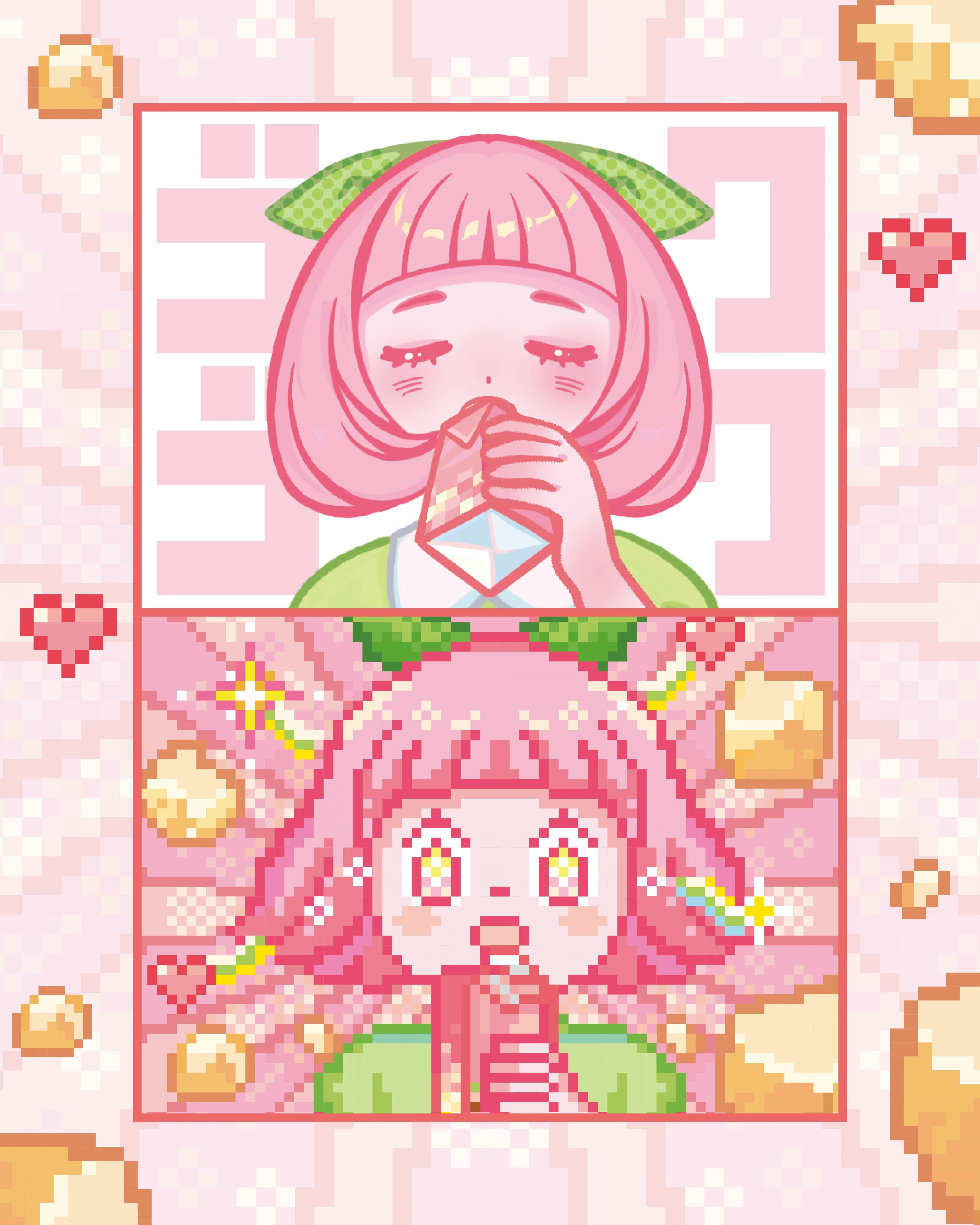 面白法人カヤックが、コンセプト立案からネーミング、デザインまでを担当。角切りにカットされた果実を、デジタル時代の最小単位である「ピクセル」に見立て、ネーミングとデザインで表現。本商品を飲んで果実がゴロゴロ流れ込むことで、普通のイラストからドット絵へと変化するキャラクターを、カヤック所属の絵本作家が描き下ろしました。また、パッケージのどこかに「カクカク」ではなく「ワクワク」と書かれた隠れ文字を配置するなど、店頭で手に取った瞬間に思わず誰かに教えたくなるような遊び心をふんだんに盛り込みました。