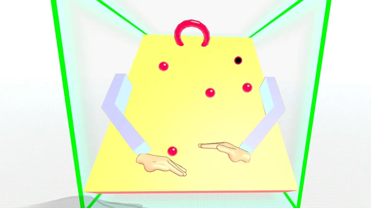 リアルな自分の手がトラッキングされているのに、画面内では棒の先に手がついていたり、巨大な手が一つだけ浮いていたり……。現実離れした状況に自分の身体感覚がリンクする「違和感」を、あえて狙いました。
