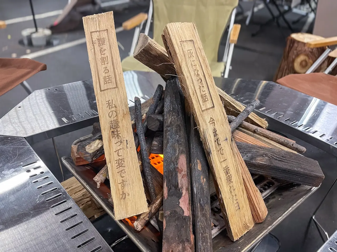 薪には、雑談やブレストに使える「トークテーマ」が書かれていて、それをくべることで会話がスタート。今回は3Dプリンターで、こんなお題を用意しました。