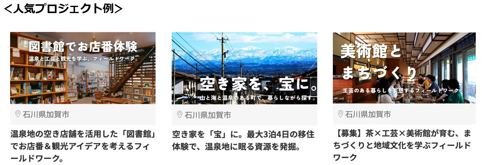 ✔️山・海・温泉が揃う加賀市で、最大3泊4日の無料お試し住宅に滞在しながら「空き家」の活用を構想するプログラムに注目。空き家を住まいや事業拠点としての「宝」と捉えて、自分らしい利活用を探れる点が多くの共感を集めた。