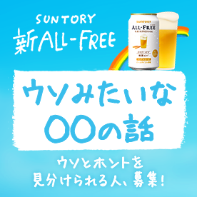 ビールらしい旨味がアップした新オールフリーの魅力を伝えるために、ウソを見抜くクイズ問題を100問作成。「ウソ」「ホント」を選択していく形式で、1回につき8問にチャレンジすることができ、最後の問題では、新オールフリーがいかにおいしくなったかがわかる問題が出題されます。