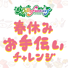 春休み限定で、「お部屋の片付け」「洗濯ものたたみ」など、5種類のお手伝いチャレンジをうながすスマホサイトとなっています。また、チャレンジクリア後に来店してくれた人全員に、モーリーファンタジーで使えるゲームメダルのプレゼントを実施。