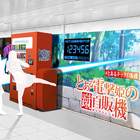 本イベントは、「とあるシリーズ」おなじみの「御坂美琴が自動販売機を蹴る」というシーンを再現し、業界初の「蹴る自販機型アトラクション交通広告」となっています。