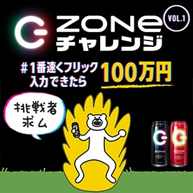 デジタルパフォーマンスエナジードリンク「ZONe Ver.1.0.0」を記念した「#ZONeチャレンジ(ゾーンチャレンジ)」の第一弾として、たかだべあのキャラクター「けたたましく動くクマ」とコラボレーションしたゲーム「#一番速くフリック入力できたら100万円」の制作をお手伝いしました。