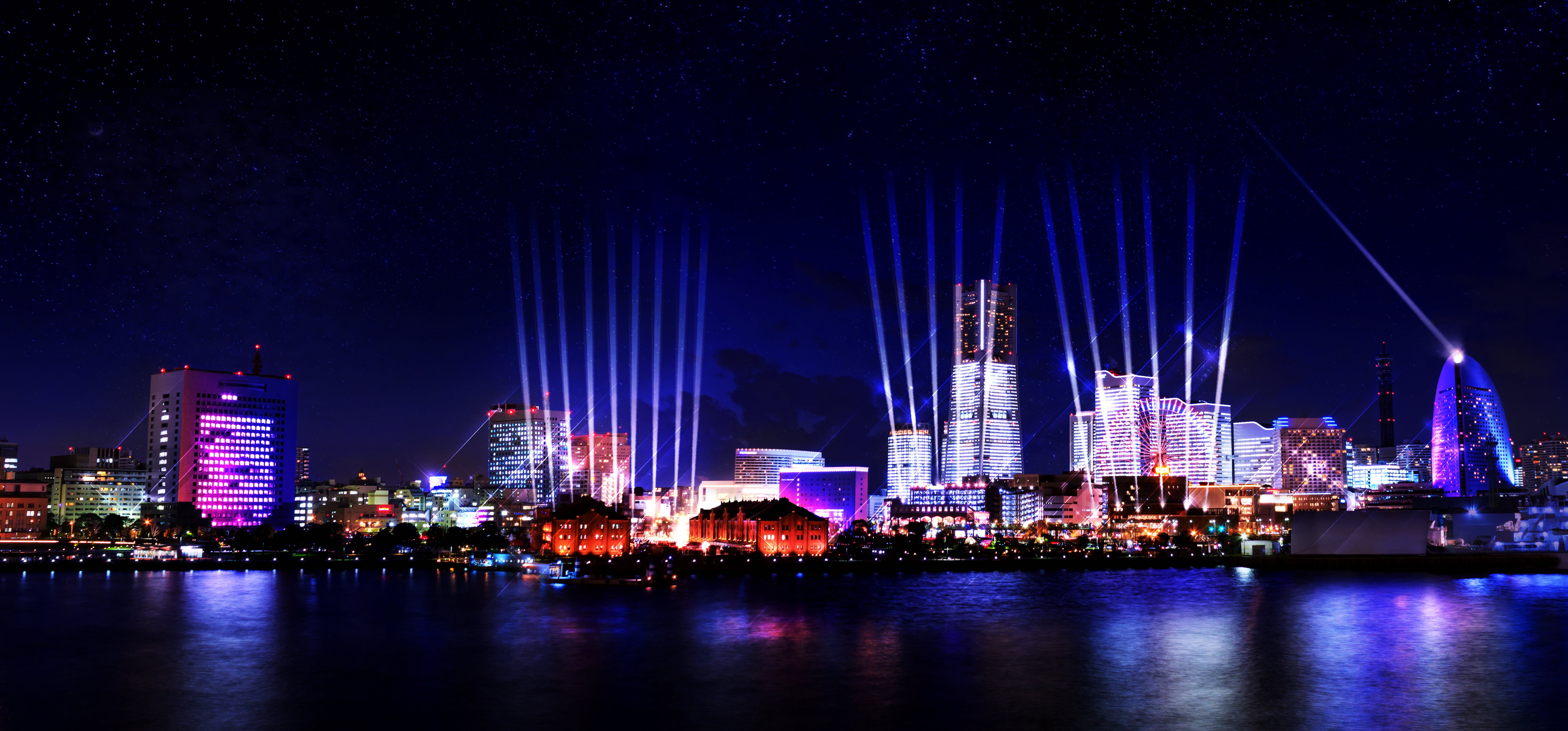 さらに、この特別演出は新港中央広場のイルミネーションや映像、新港地区及び周辺の8施設とシンクロし、建物壁面のカラーライトアップやサーチライトによる、ダイナミックな光と音楽の総合演出となります。複数の建物に設置したライトを一括でコントロールし、都市的なスケールで演出するのもこれまでにない試みとなりました。