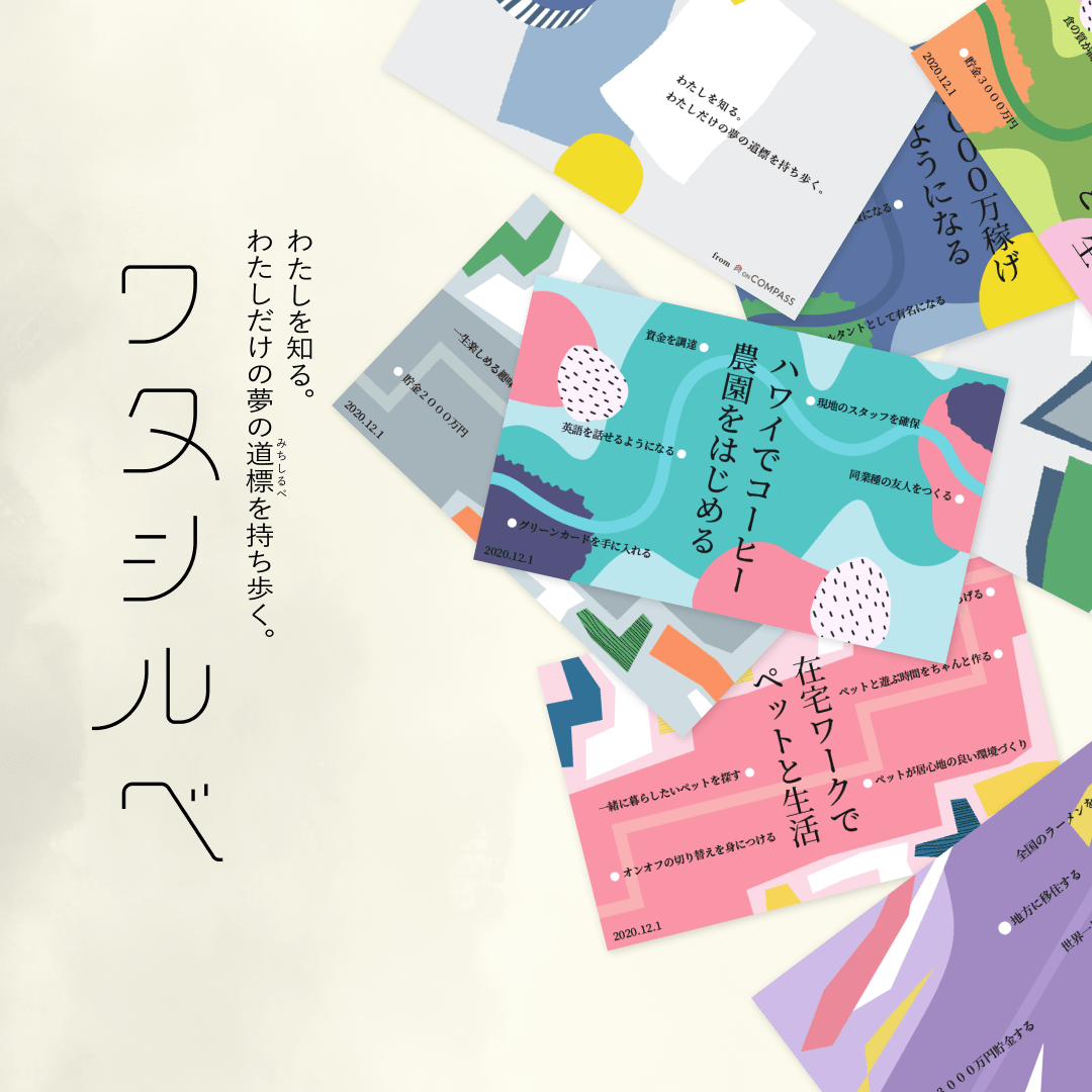 日本人は4分の1の人しか夢を持っていないという調査結果がありました。ワタシルベはそんな日本人に夢を持ってもらいたいという思いから、マネックス・アセットマネジメント株式会社とカヤックが共同で企画制作した夢の再発見ツールです。