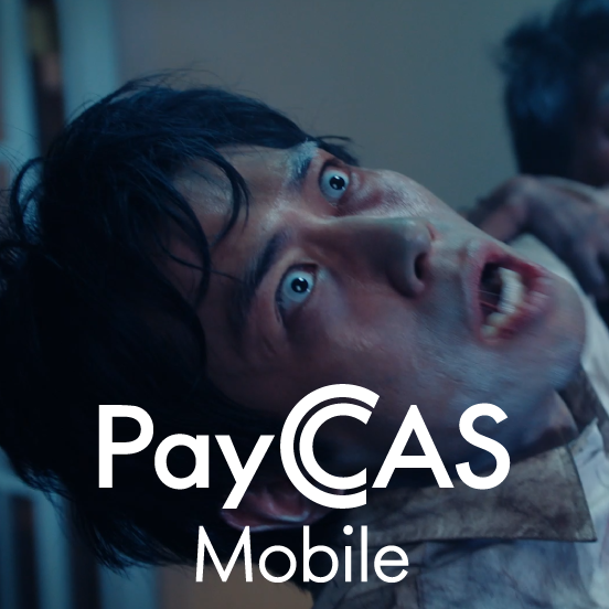 山奥にある屋敷を訪れた集金担当者。玄関を入るとそこはゾンビでいっぱいの家だった。家主は、スマートフォンを持っており、ゾンPay(バーコード決済)なら支払える。しかし、取り扱いは現金のみ。そこに現れたどこでもセールスマンの喜安。PayCAS Mobileを渡された集金担当者が、恐る恐るスマートフォンのバーコードを読み込むと、決済ができた。