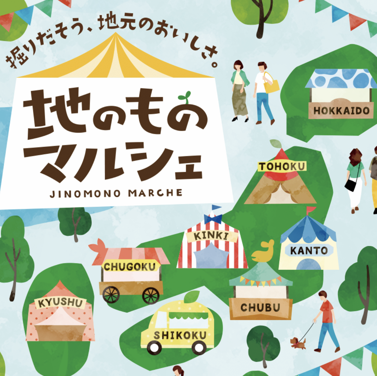 カルビーは原材料調達において、ジャガイモは北海道、エビは瀬戸内など、地元とのつながりを大切にしておいしさを届けてきた企業です。『地のものマルシェ』には、これからも地元素材の活用やその土地の文化の発信などにより、地元の魅力を掘りだす活動を続け“笑顔と幸せの連鎖”をおこしたいという思いが込められています。