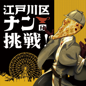 本コンテンツのテーマはカレーの「ナン」。美味しそうな焼き色がチャームポイントの探偵「江戸川区ナン」と共に、江戸川区の街に関するナン問題をクイズ形式で解いていくストーリーです。