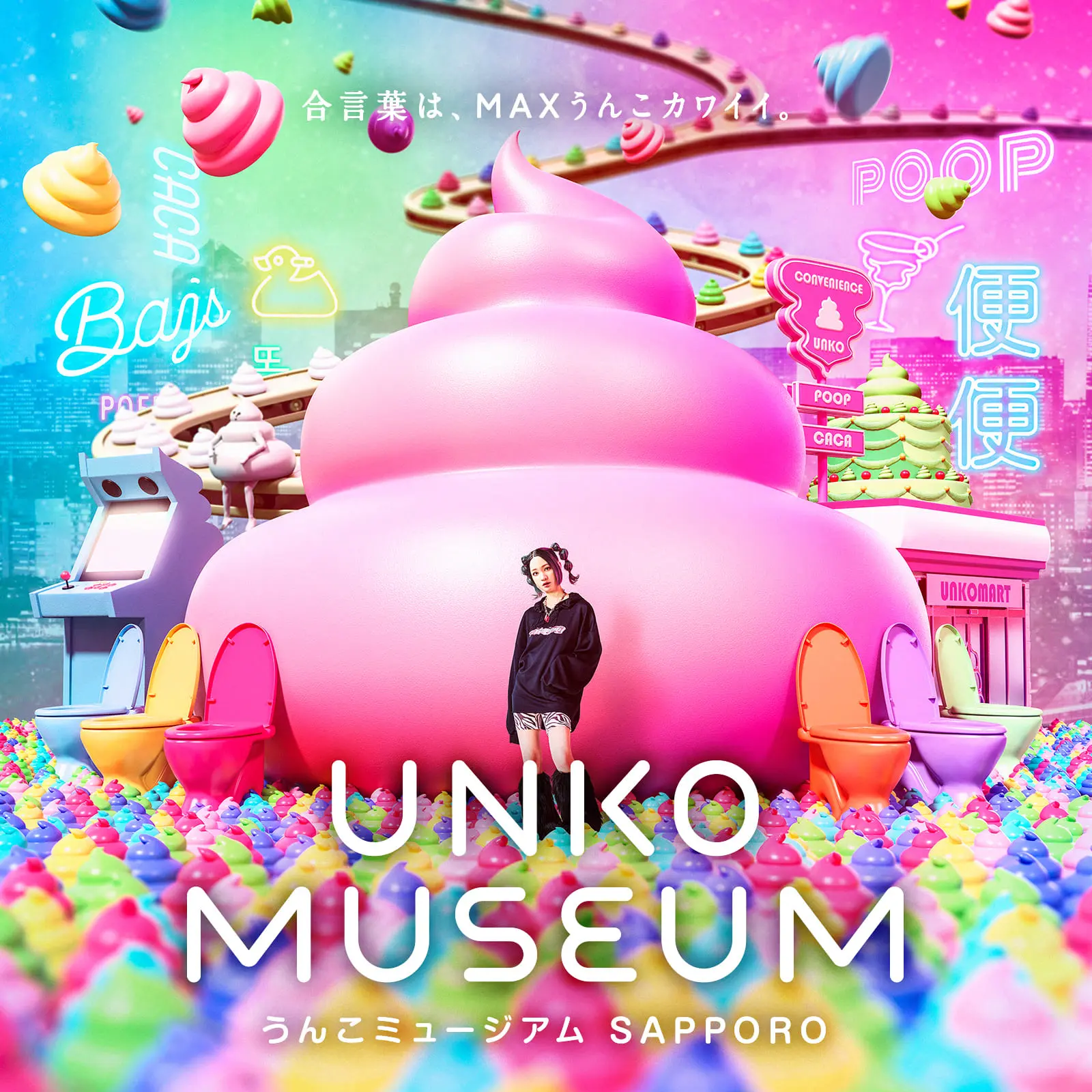 自分だけのマイうんこをつくれる「マイうんこメーカー」に始まり、MAXうんこカワイイ "映え" を追求できる「ウンスタジェニック エリア」、うんこが噴火する「うんこボルケーノ」、うんこがふんだんに盛り込まれたアトラクションやゲームが並ぶ「ウンタラクティブ エリア」、かわいいうんこ動物をお触りできる「うんこ動物」エリアなど、定番のコンテンツがありながら、札幌会場にしかないエリアも制作しました。