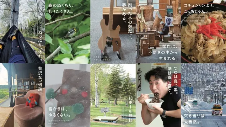 音威子府村の魅力は、一言では語りきれません。自然や暮らし、人との関わりの中に、その魅力が息づいています。そうした「1枚では伝えきれない魅力」を届けるため、123枚のポスターで可視化しました。ポスターの写真は、村民の協力のもと集められたもので、日々の暮らしの中で切り取られたリアルな風景や名物が並びます。そこにユーモアのあるキャッチコピーを添えることで、音威子府村ならではの多様な魅力を伝えています。メインコピーは、「おっといいね、おといねっぷ。」。音威子府村の魅力は、情報だけでは一見伝わりづらいものの、実際に訪れたり、話を聞いたりする中で、ふと「いいね」と感じる瞬間が点在しています。そうした思わずこぼれる「おっと、いいね」という感覚を表現しました。