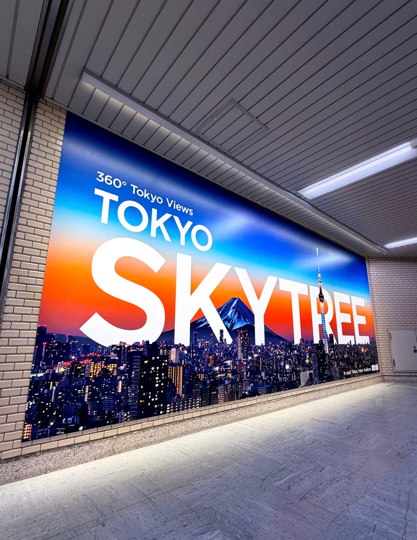 ポイントは、浮世絵を彷彿とさせる鮮やかな色彩と、大胆なタイポグラフィ。空港に到着したばかりのゲストを圧倒し、東京のシンボルである東京スカイツリーに思わず行きたくなる「ワクワク感」を醸成するデザインに仕上げています。