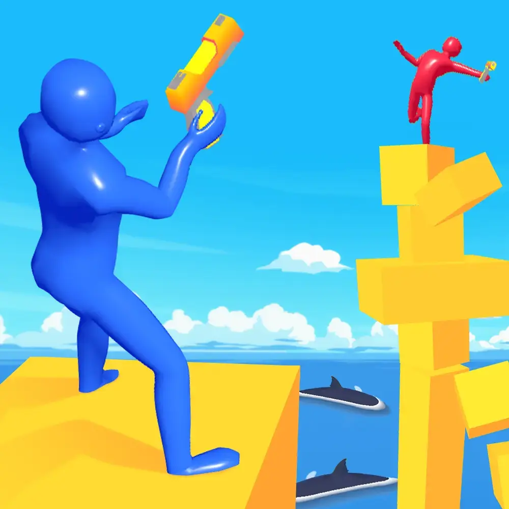 サメが泳ぐ海の上で、タワーに登り銃でバトル!